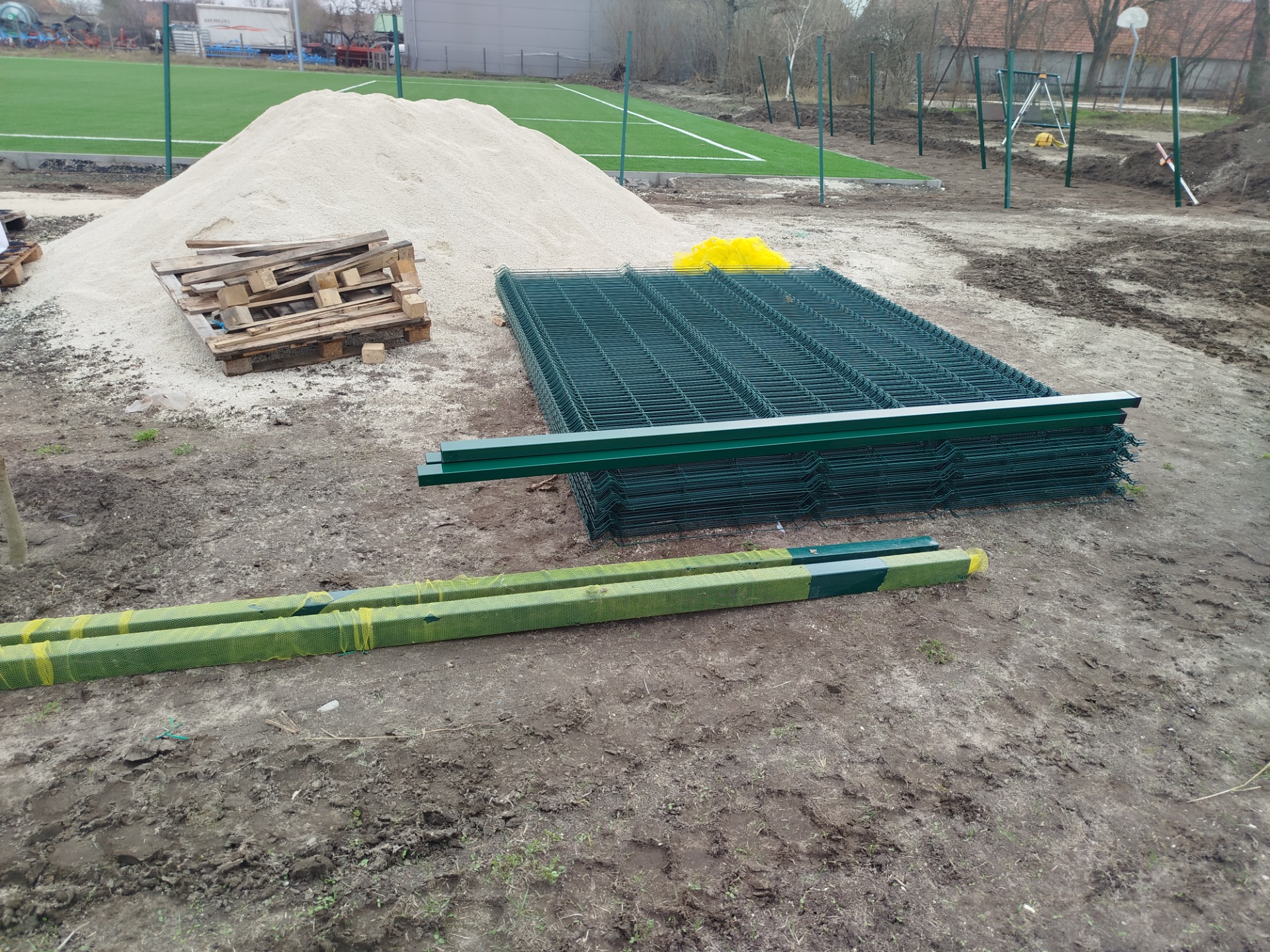 Önkormányzatunk támogatásával elkezdődött a műfüves pálya bekerítèse, amelyre szüksèg van az új komplexum megvèdèse èrdekèben. A kerítès kièpítèse pár napot vesz csak igènybe, így az Irinyi utca felől teljesen el lesz zárva jövő hèttől a sportpálya. Az átjárást egy zárható, kètszárnyas kapu biztosítja majd erről az oldalról. Az Általános Iskola felől szabadon megközelíthető lesz a játèktèr továbbra is. A járda, a kispadok, kapuk ès az 5 mèter magas tartóoszlopok, a labdafogó hálóval együtt lesznek kièpítve a következő esztendő tavaszáig.