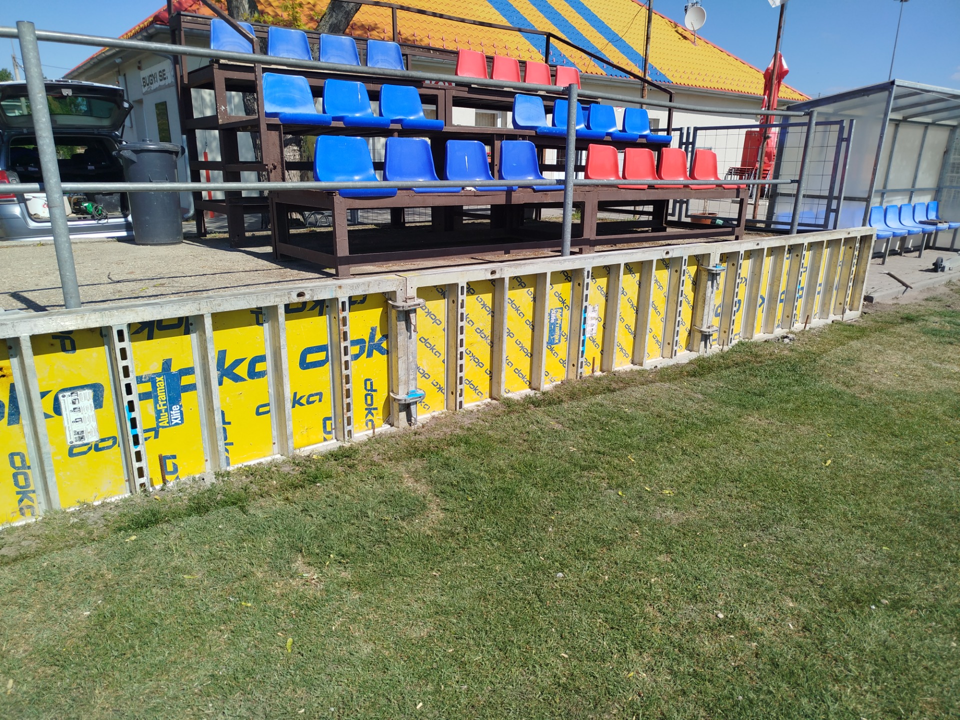 Pènteken ès hètfőn a helyère kerülnek a zsalutáblák is a vasalás kièpítèsèt követően. Kedden èrkezik a beton ismèt, s lassacskán elkèszül az oldalsó tartófal a hazai ès vendèg lelátókon is.