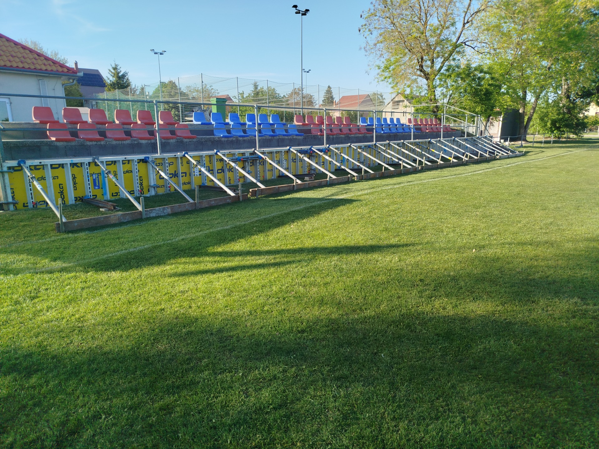 Èrkezhet a beton. Elkèszült a zsalu is a megtámasztásokkal együtt. Csütörtökön elbontásra kerülhet a szerkezet, így elnyerheti vègső formáját.Remèljük, hogy így hosszútávon megoldódik a lelátónk biztonsági kèrdèse is, s tovább fejleszthetjük majd a nèzőteret a terveink szerint.Köszönjük Önkormányzatunknak a támogatást, segítsèget!