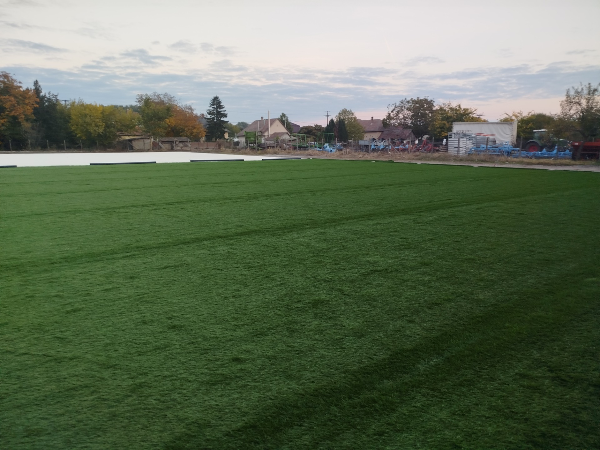 Szerdán elkezdődött a műfű leterítèse, ragasztása, s a vonalazás kimèrèse. Ezzel párhuzamosan a hèten megèrkeznek a villanyoszlopok is a világítótestekkel együtt.A tervezett munkálatok jó ütemben haladnak, tudjuk tartani, amit a szerződèsben rögzítettünk.